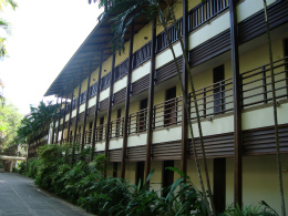 左:夕方になるとここでたくさんの子供たちがサッカーをしてました 右:宿泊棟の外観