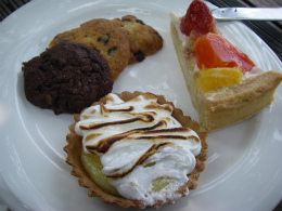 左:デザートも種類が豊富!右:とある日の朝食です。洋食だけでなく、和食も、中華もあって毎日でもちっとも飽きません。