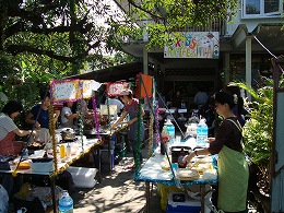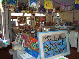 室内には教室に通う子供たちが描いた絵、作った工作が展示され、外ではヨーヨーつりやたこ焼きその他たくさんの出店が出るというお祭りです