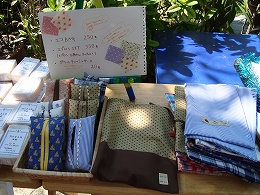 右:手作り市に出店した私の作品。久しぶりのミシン仕事が楽しかった