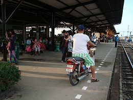 10分ぐらい乗って、駅に到着。ホームにはかなり人がいました。そしてなぜかバイクも走ってたりして。。。