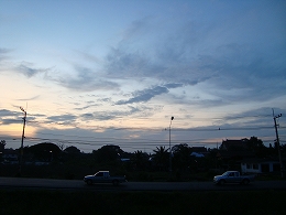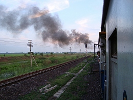 アユタヤ駅を17:25に出発。窓をあけて車窓からの眺めを楽しみました(田畑ぐらいしか見えない)だんだんと日が暮れてきました。