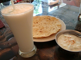左:ラッシーとチャパティ 右:タンドリーチキン
