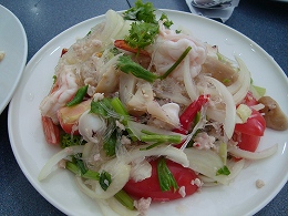 これを4人でシェアして、一人100バーツ う~ん、安いっ そして、おいしかったです