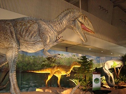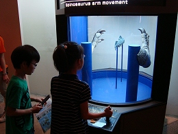 化石だけでなく、復元された恐竜や、手の動きを体験できるコーナーなんかもあります