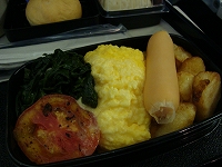 中:大人用朝食:スクランブルエッグがちょっと塩っぽかったけど、付け合せのポテトがおいしかった