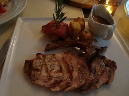 左:ポークチョップ 右:イカの・・・トマトソースの・・・何だっけ? どちらもやわらかくて食べやすかったです