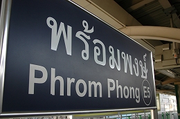 右:ホームの駅名表示。タイ語と英語が併記されて、さらに駅の番号がついてます。(これはプロンポン駅)