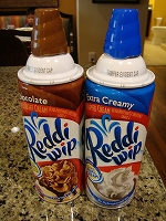 缶をよ~く振って、さかさまにして口を押すと、プシュ~っとホイップクリームが出てきます
