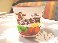 右:BROWN COWのCREAM TOP(ヨーグルトです。カップの底にジャムが入っていて、混ぜて食べます。写真はピーチ。ストロベリーもおいしい。メープルシロップもちょっと変わってるけどなかなかです。プレーンもあります)