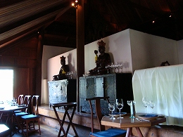 店内はこんなかんじで、とてもエキゾチックな雰囲気です。テーブルの上にキャンドルがセッティングされていて、夜はさらにいい雰囲気なんだろうなぁと思わせます・・・