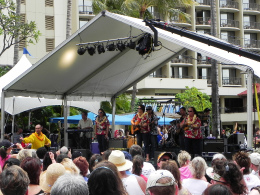日本でも人気の「ブラザーズ・カジメロ」「ナ・レオ」「エイミー・ハナイアリイ」と豪華な出演者が続きます