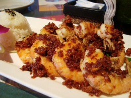 左:ガーリックシュリンプ 皮もパリパリでgood!