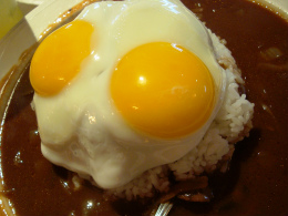 右:このお店の看板料理 プレミアムロコモコ 神戸牛を使ったハンバーグで作られてるそうで・・・