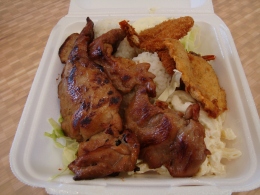 ごはん+マカロニサラダ+おかずというプレートランチを2種類食べました