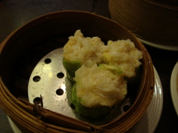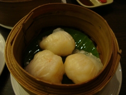 右:飲茶と言えばコレ!エビ蒸し餃子 エビがぷりっとしてておいしかった右:カニしゅうまい 左:肉まん 見たまんま。味は・・・可もなく不可もなく・・・
