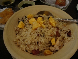 左:タロイモ入りチャーハン タロイモがサツマイモのように甘くて不思議な味わいでした。結構好きな味