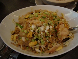 右:やきそば というか、タイ料理のパッタイに近いものでした。コショウがきいてるけど、一味足りないので、ナンプラーとかちょっと何かかけて食べたらおいしかった