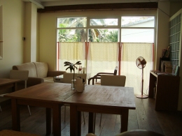 下右:店内は木の床&家具で、小花柄のクッションなんかおいてあって、やっぱりナチュラル系のインテリアでした