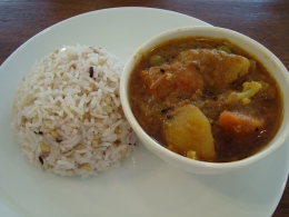 辛くなくて、とくにお米がおいしかった。オーガニックジャスミンライスに雑穀をまぜてるそうです。