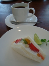 ミニケーキは日によって違うらしく、この日はフルーツサンド