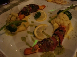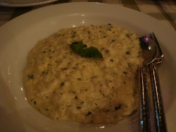 左:チーズのリゾット 少々塩辛かった 右:サーモンのムニエル 付け合わせのレモンが黄色!(タイのレモンは緑です)