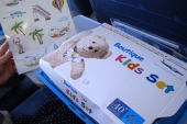 左から①キッズミール(箱のふたの裏が空港の絵になっていて、おまけのシールを貼って遊べます