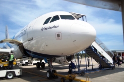 機体にはリゾート気分を盛り上げるカラフルな絵が描かれています