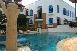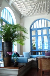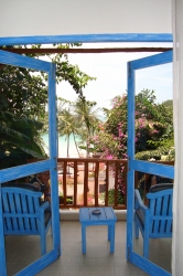 白い壁と水色の窓枠がアジアリゾートでない雰囲気(なんとなく地中海風かな)