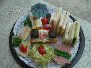 「アフタヌーンティセット」だそうです。料理だけど、ただ作るだけでなく、1枚の絵に見立てて、いろいろと考えて作ったみたい。