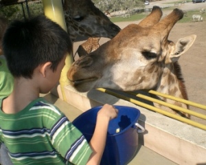 「サファリテラス」でキリンにえさをあげました