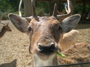 こ~んな近くでシカを見たり・・・(前を走る車の人が、エサをあげたらしく、我が家の車にもちょ~だいっておねだりしてました)