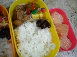半分寝ぼけて、半分あせって混乱している頭を叩きつつ、急いでお弁当を作ります≡3