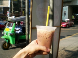初めの頃は「こんな甘いの飲めない!」って思ってたけど、冷たくて甘いコーヒーはおいしいかもって近頃思ってます。(味覚がタイ人化??)