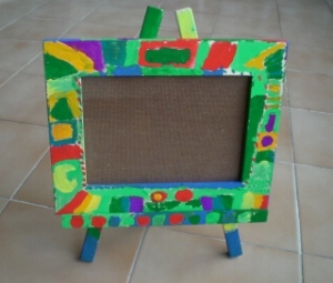 今回は写真たてを作りました。2時間近くかけて完成させて、かなり満足している様子