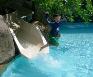 ホテルのプールに小さい滑り台があって、子供たちはコレに大喜び♪
