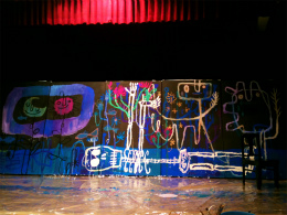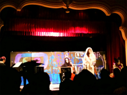 簡単に言うと、1つのステージ上で、音楽(ピアノ・琴・チェロ・歌)と絵画が同時に進行していくのです。