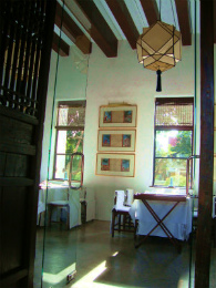 左:2階から中庭を見下ろすと・・・ 右:中庭にはこんなレリーフもあったりして、古いタイの文化もステキだなぁ。やっぱり同じアジア人として落ち着きます