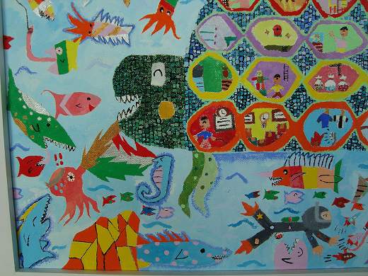 左下:カメの甲羅をひとつひとつ色を変えて塗るのに、とても時間がかかりました