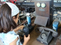 左:昔の電話。子供たちは初めて「黒電話」を見たそうで。ダイヤルを回すのが珍しいって